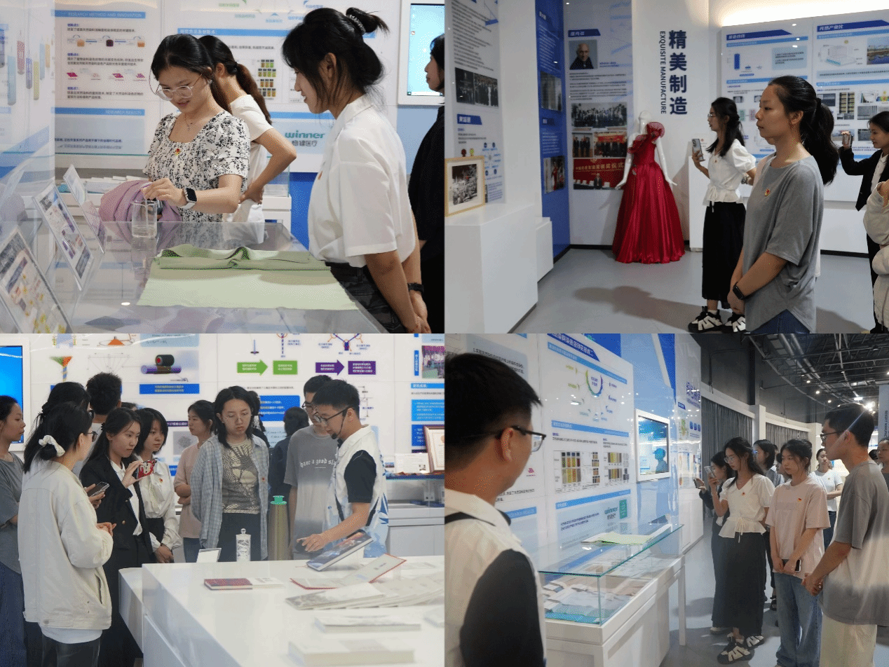 随后,支部全体党员有序步入纺织科技馆。馆内陈列的丰富纺织历史文物、现代化的纺织设备和前沿的纺织技术成果,让党员们深感震撼。通过参观纺织缘、传统纺织、现代纺织、大纺织、超纺织、未来纺织等分区,党员们切身实地感受到纺织产业的深厚底蕴,以及学校在学术科研、人才培养、产学融合等方面取得的成就。从“历史的照片”到“鲜艳的红旗”;从新石器时代的古老骨针,到现代航天服的高科技内衬织物,一件件展品讲述着纺织产业的历史故事,串联起纺织的印记,鼓舞同学们不断提升专业素养和综合能力,坚定理想信念,接续传承“自强不息,经天纬地”的纺大精神。